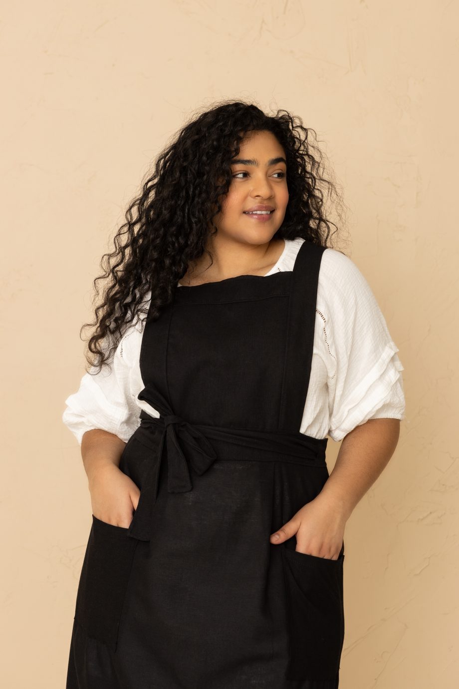 If you choose to air dry make sure there is an air flow that keeps the dress moving while it dries.  This will help avoid that initial stiff feeling when the linen dries. I air dry my linen dresses either outside in a breeze or hanging inside near a fan. Don’t worry, even if your linen item is initially stiff after drying, it will relax and soften with regular wearing and washing.